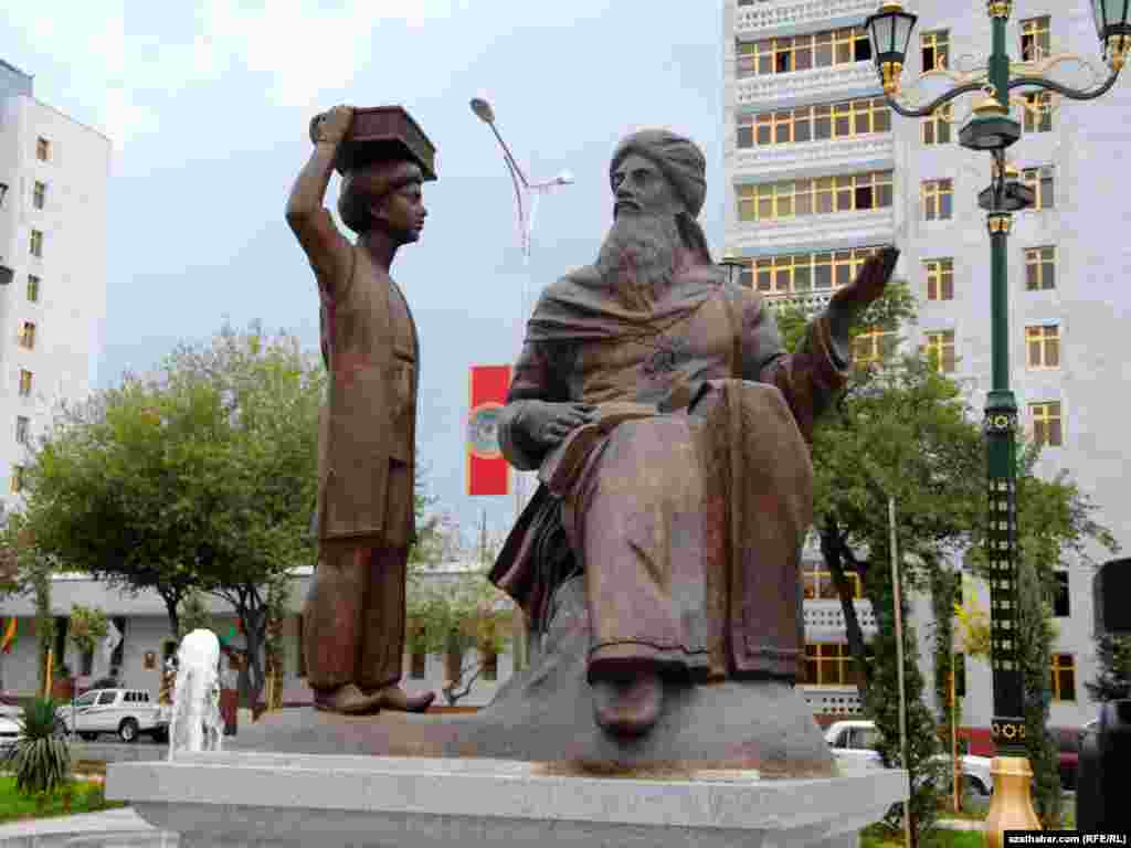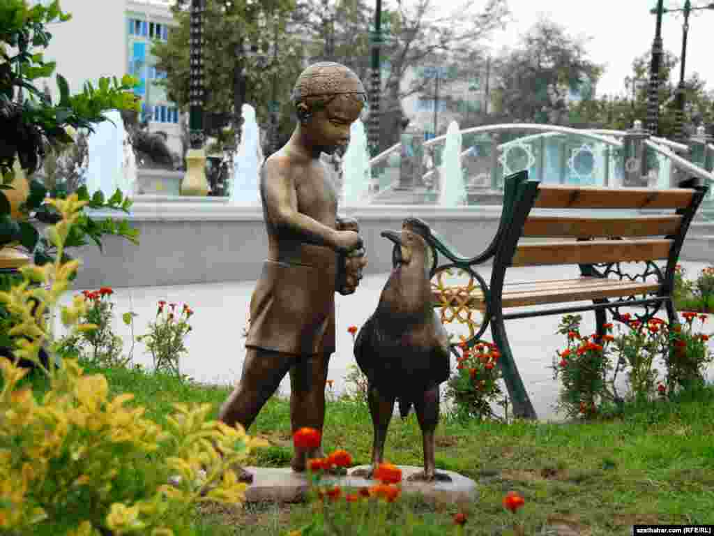 Aşgabatdaky Garajaoglan seýilgähiniň we Parahat medeni merkeziniň aralygyndaky meýdançada ýerleşýän Ylham çeperçilik-seýilgäh toplumyndan fotosýužetler