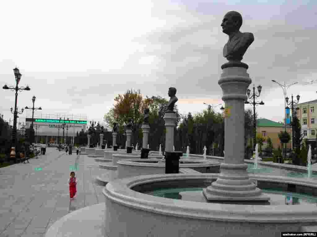 Aşgabatdaky Garajaoglan seýilgähiniň we Parahat medeni merkeziniň aralygyndaky meýdançada ýerleşýän Ylham çeperçilik-seýilgäh toplumyndan fotosýužetler