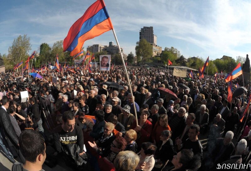 Ermenistanyň Milli kongresiniň tarapdarlary Ýerewanyň Azatlyk meýdançasynda, 2011-nji ýylyň 28-nji apreli.