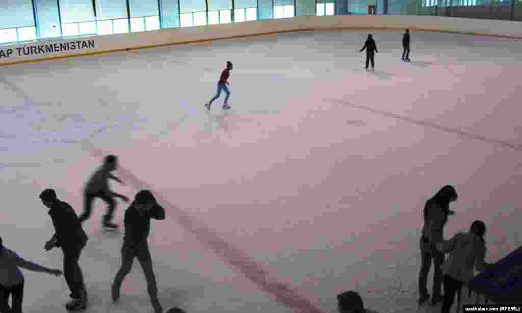 Aşgabatda ýerleşýän Buzly köşgüniň buzly arenasynyň uzynlygy 60 metr, ini bolsa 30 metr. Bu buzly meýdançada bir wagtda 150 adama buzda typmaga mümkinçilik bar. Buzda typmak üçin barýanlaryň sany ýyl geçdigiçe artýar.