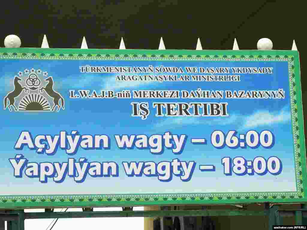 Uzakdan seredip, Türkmenabadyň merkezi bazarynyň iki bölekden ybaratdygyny aýtmak kyn. Sebäbi olary biri-birinden aýyrýan haýsydyr bir bellik ýok. Emma bazaryň gündogar bölegi Lebap welaýat alyjylar jemgyýeti birleşmesine, ýagny hökümete, günbatar tarapy bolsa hususy telekeçilere degişlidir.