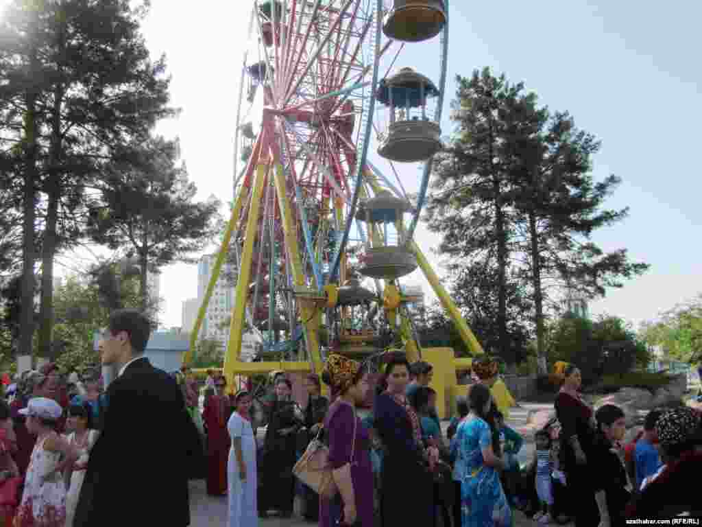 Aşgabatdaky "Ertekiler dünýäsi" seýilgähinden suratlar. Dynç günleri, il içinde "disneýlend" hem diýlip atlandyrylýan bu seýilgähe gelýän adamlaryň sany has-da köp bolýar.