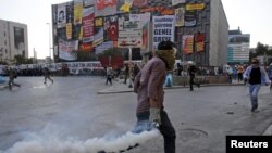 Türkiýäniň pitnä garşy polisiýasy barrikada päsgelçiliklerini böwsüp, Stambulyň Taksim skwerine girdi.