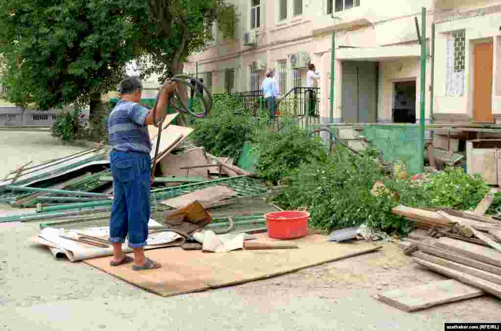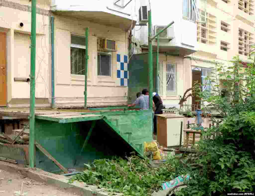 Aşgabadyň Parahat-4 etrapçasyndaky dört-bäş gatly ýaşaýyş jaýlara goşmaça gurlan otaglar, ýagny il içinde aýdylyşy ýaly “pristroýkalar” ýykylýar. Häzirki wagt, bu ýerde ýaşaýjylaryň öz pristroýkalaryny söküp, ondaky goş-golamlaryny ýygnaýan pursadyny görse bolýar.