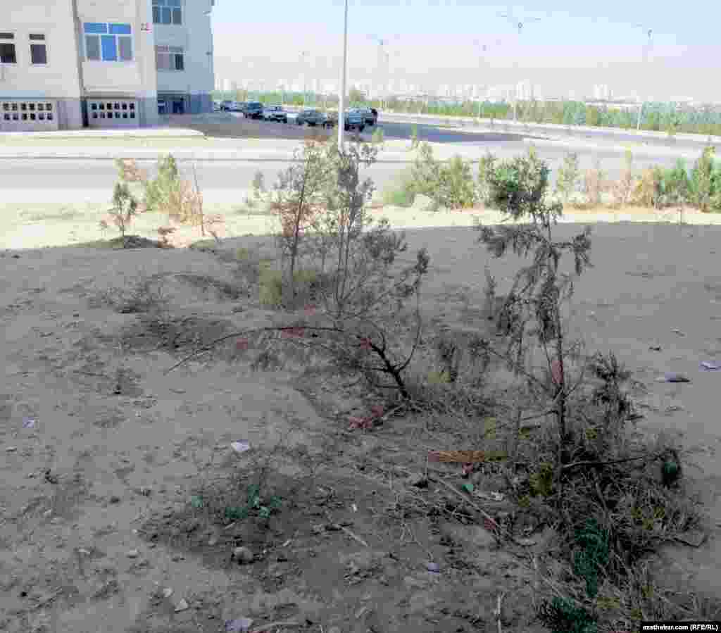 Aşgabadyň Parahat-7 etrapçasynyň daş-töwereginde ozal ekilip, soňra idegsiz galdyrylan ýüzlerçe baglaryň oýulyp ýatan çukurlaryny görse bolýar.