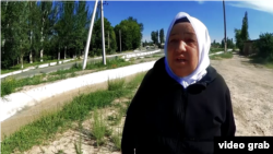 "Suw akyp duran ýerden, biz beýleki tarapa geçmeýäris, olar hem bize tarap geçmeýärler. Serhetde serhetçiler aýlanyp ýör. Öňler bu ýerde uly awtoulag ýoly bardy, ondan Nanaý-Kerben-Namangan ugry boýunça awtobus gatnaýardy. Indi bu ýerden serhet geçýär, hatda adamlar hem gatnap bilmeýär. Ýoluň ol ýüzi Özbegistanyňky. Serediň, aralyk bary-ýogy 4 metr" diýip, Täžikan Taşpulatowa görkezýär.