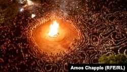 Agşam sagat 10-dan soň, müňlerçe adam el-ele berip, milli däpdäki tansy ýerine ýetirdiler. Ýüzýyllyk taryhyň dowamynda Bolgariýa üçin wepat bolanlaryň hatyrasyna elleri ýanýan kesindili adamlaryň gussaly ýörişinden soň, ol kesindileri ýeke-ýekeden oda atdylar.